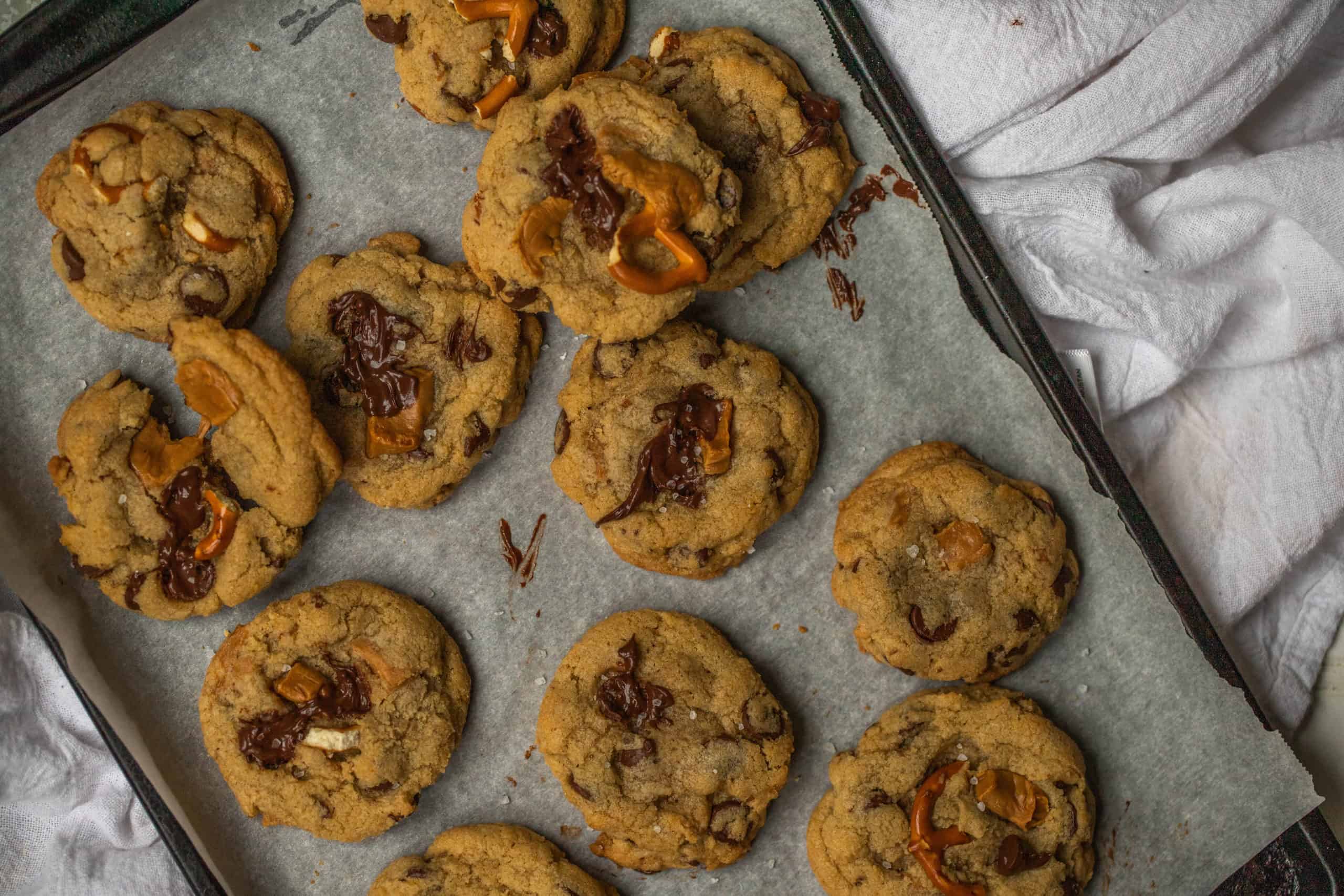 Salted Caramel Pretzel Chocolate Chip Cookies