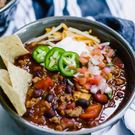 Let me know what you like to top your chili with and what you prefer to serve with it! I’d love to hear about it!