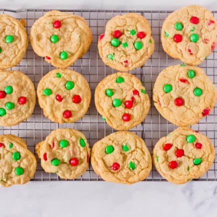 Bake for 10-11 minutes. Once the cookies, I like to add a few more m&m’s on top of each cookie. Enjoy!