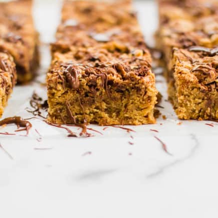 Although the peanut butter blondies were good all on their own, I decided that the deliciousness needed to be taken to the next level. So why not drizzle the shit out of them with some semi sweet chocolate? SERIOUSLY…Nothing like the combo of peanut butter and chocolate. Not too sweet but perfectly balanced.